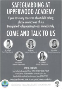 Our Designated Safeguarding leads are Mrs Padfield, Mrs Brown, Mrs Crossland, Miss Hillam and Miss Simpson.